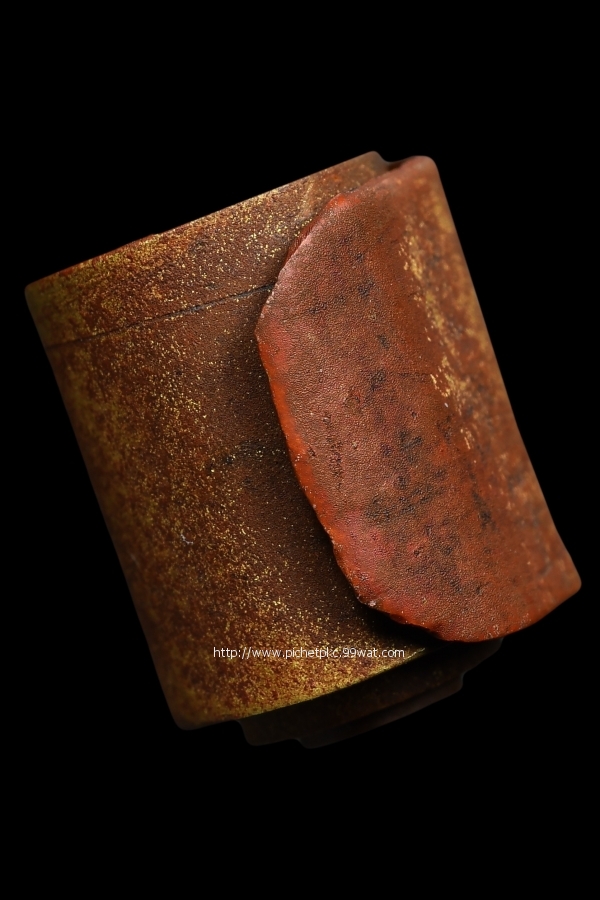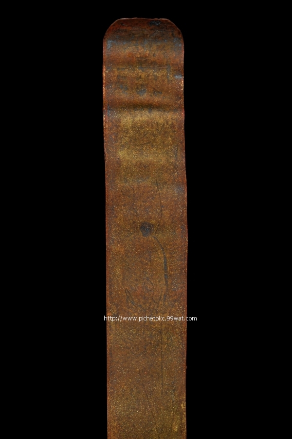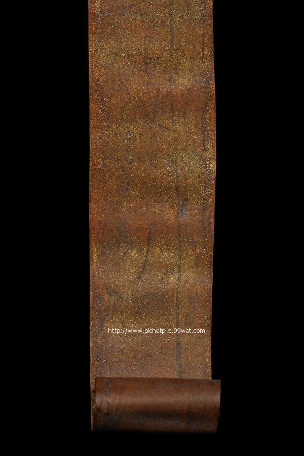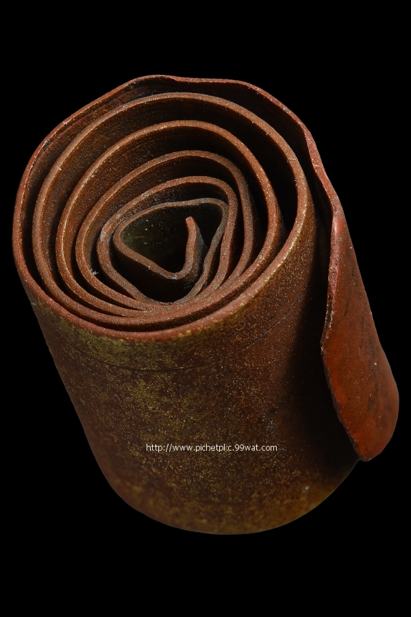 ตะกรุดลูกอมโลกธาตุ เนื้อทองฝาบาตร คลี่ดูจารลายมือเป็นจารหัวใจโลกธาตุ ขึ้นด้วยยันต์ใบพัด |
